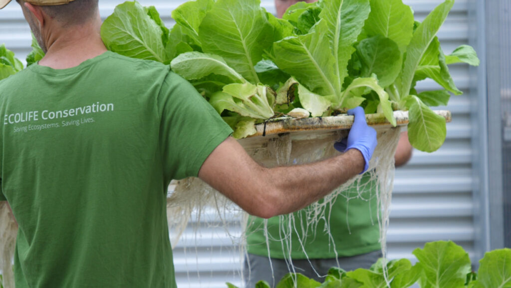 At ECOLIFE Conservation, we are transforming food systems to prevent habitat loss, conserve natural resources, and increase quality of life around the world. ECOLIFE’s Sustainable Agriculture Program brings aquaponics to communities in need using a three-tiered approach: 1) education and inspiration via the ECO-Cycle, 2) learning, production and workshops via the Aquaponics Innovation Center (AIC), and 3) empowering communities and families to grow on their own, via community systems.